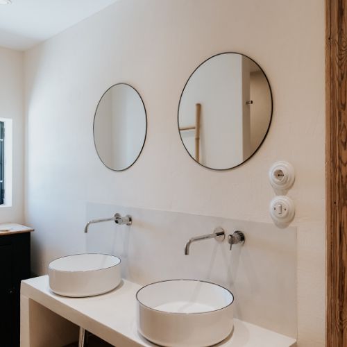 Both of our houses have been designed with children in mind. Spacious interiors with superb minimalist decor, 7m to the ceiling in the sitting room/kitchen. We've created a good balance of warmth and minimalism.