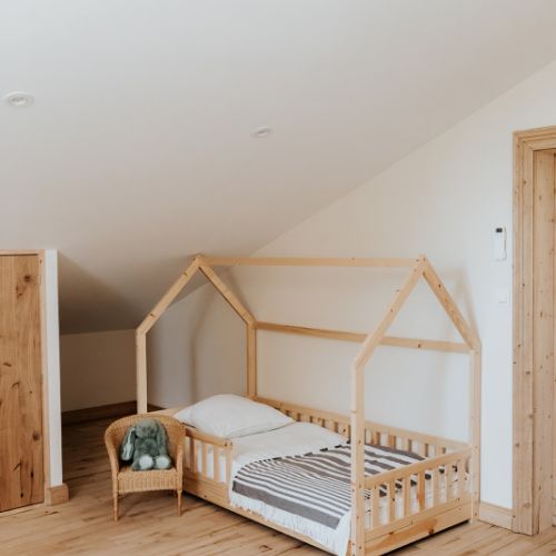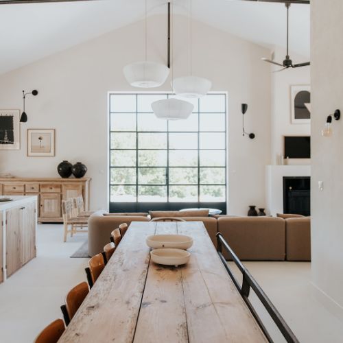 Both of our houses have been designed with children in mind. Spacious interiors with superb minimalist decor, 7m to the ceiling in the sitting room/kitchen. We've created a good balance of warmth and minimalism.