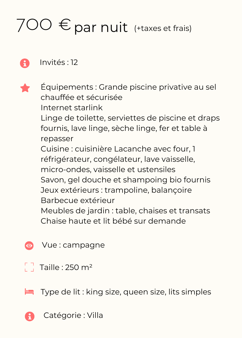 Grande piscine privée au sel, chauffée et sécurisée, vaste jardin...